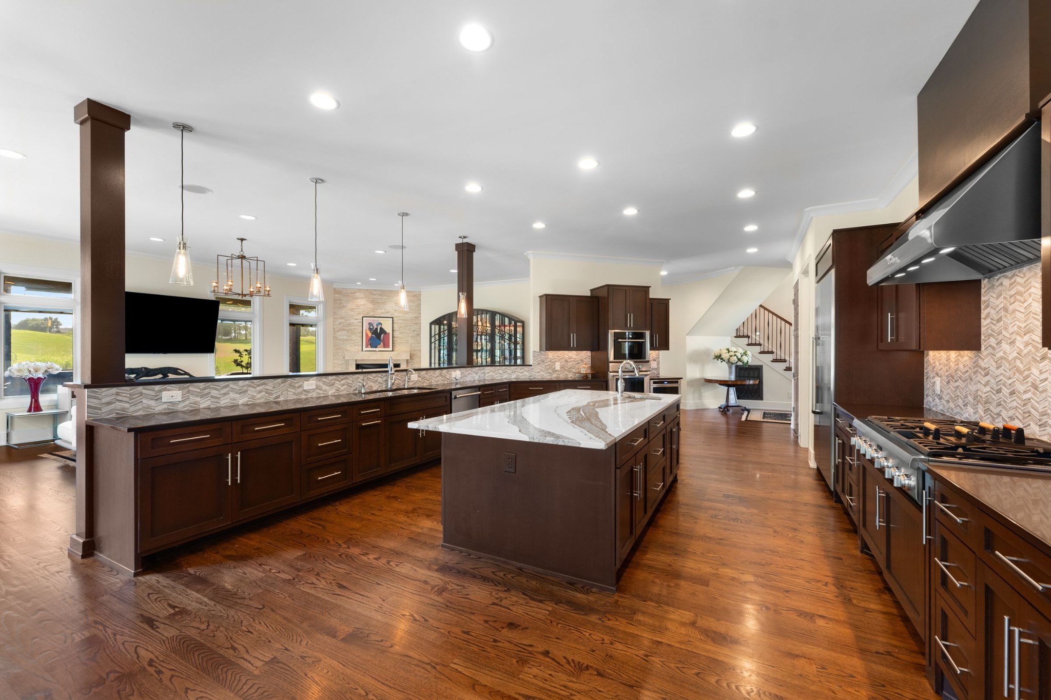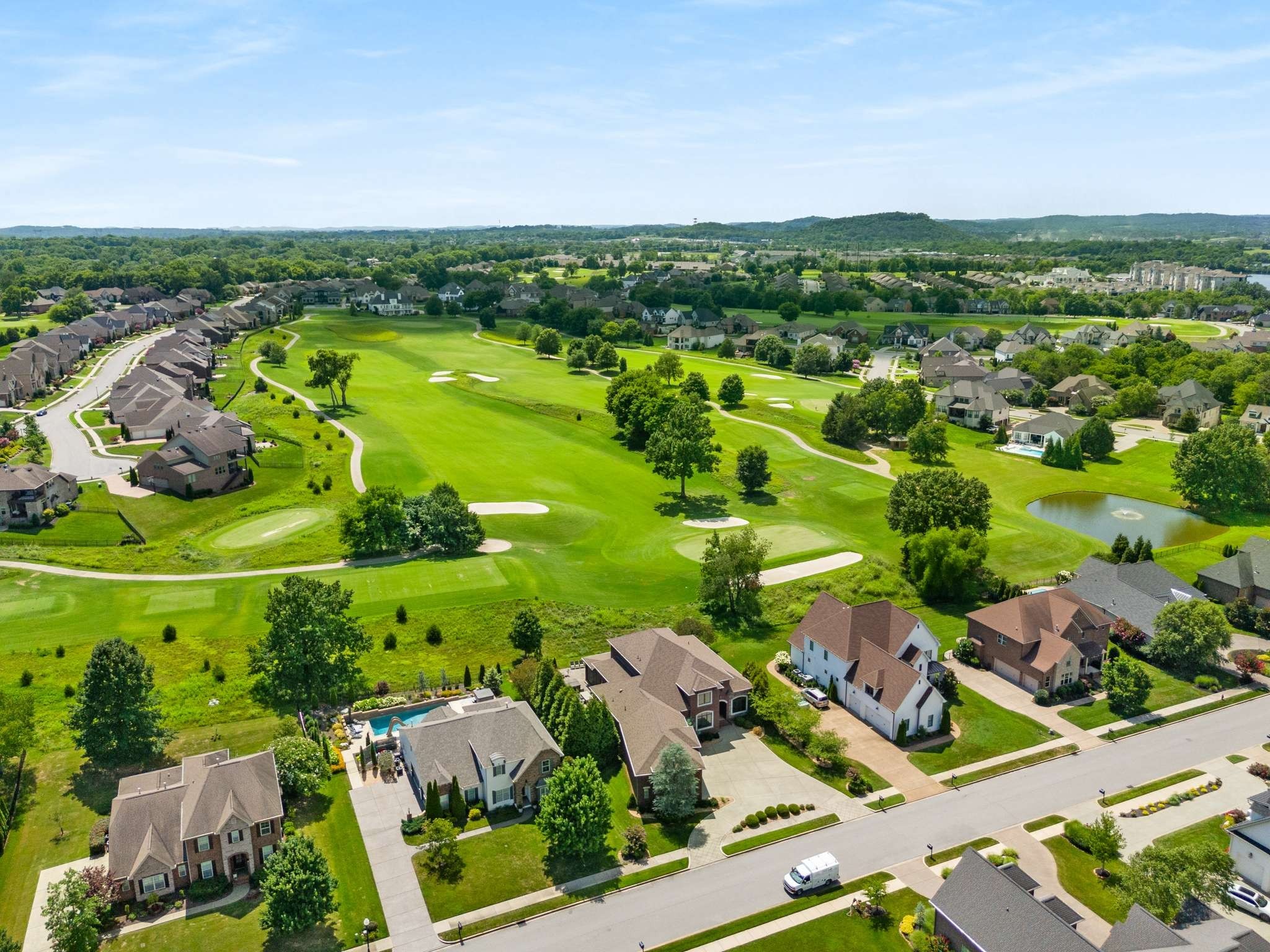 Pemiere Foxland Harbor estate home perfect for year round resort style living! This Bob Shaw custom home is an entertainers dream! Thoughtfully designed to maximize the expansive fairway views between 7th green & 8th tee of the Foxland course and lake views from the front. Open concept kitchen with great circular flow and Professional Thermador & Viking appliances, hidden coffee bar, eat-in island, breakfast room and storm shelter within kitchen pantry. Family room off the kitchen leads to 600 sqft of outdoor entertaining space. Enjoy screened porch + grilling station with Weber grill and Kamodo Smoker, hot tub and fire pit surround. Upstairs there is a large TV rec room and music studio/craft room down the hall with climate controlled storage. Add’l 600 sq ft of unfinished attic space above the garage is waiting for the perfect addition.