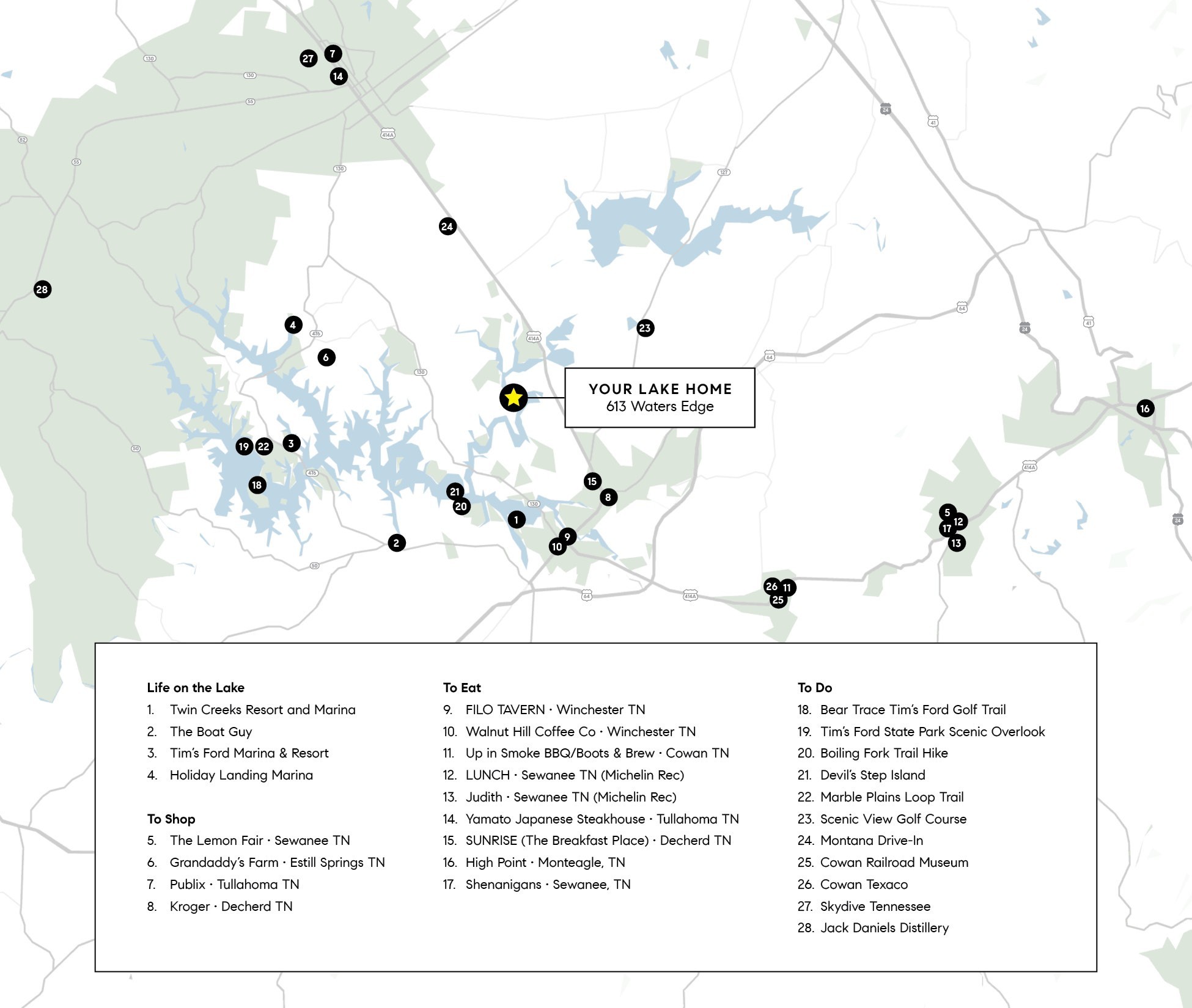 Lake Season is just around the corner and this newly constructed lakefront retreat that embraces the lifestyle of its shoreline setting on Tim’s Ford Lake is ready! Outdoors, thoughtfully designed spaces with entertainment-ready living across covered lakefront terraces for effortless hosting, sunset dining, and fireside evenings. Manicured grounds gently meet the shoreline, where private dock permitting is available, creating direct access to boating, swimming, and all the pleasures of living on a private deep water cove on Tim’s Ford Lake.Expansive glass windows and doors create a seamless connection between outdoors and in. Walk inside the two story great room and you’re met with sunlight pouring into the integrated living, dining, and kitchen areas, where timeless materials and clean lines create a warm modern atmosphere that is both sophisticated and inviting—perfect for gathering with family and friends or indulging in relaxation. Rich hardwood floors, bespoke lighting, and custom finishes elevate every detail. The main-level primary suite is a true sanctuary, framed by floor-to-ceiling windows that capture sweeping lakefront views. Its spa-inspired bath showcases a dramatic soaking tub, dual vanities, an expansive shower, and private dressing room closet. Sprawling spaces also offer a club/billiard‘s room, home fitness/music center, auxiliary en-suite bedrooms, and attached 2+ car garage.